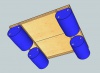 - Using 27 gallon bins. (See notes elsewhere for how to seal them). The crossbeams should be adjusted so that the bins fit properly. 4 bins may not provide enough floatation to guarantee the top of the platform stays dry (880lbs of floatation vs 1760 for the drums), but 6 bins (3 in each track) should be sufficient.